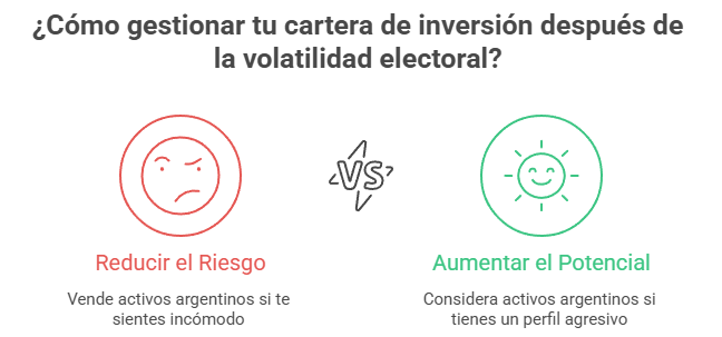 Si llegaste a la elección con una cartera pensada para un solo escenario ya sea 100% dolarizado o 100% acciones argentinas, diversificá en distintos activos. Tener un solo activo en cartera te deja muy desprotegido frente a distintos escenarios que puedan darse y es un error que nunca va a cometer un inversor experimentado.