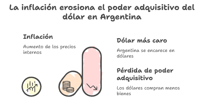 En términos técnicos: hubo una inflación en dólares. Quien dejó el dinero «quieto» (Cash), perdió poder de compra real en la economía doméstica. Sus dólares hoy compran menos ladrillos, menos comida y pagan menos servicios que hace un año.